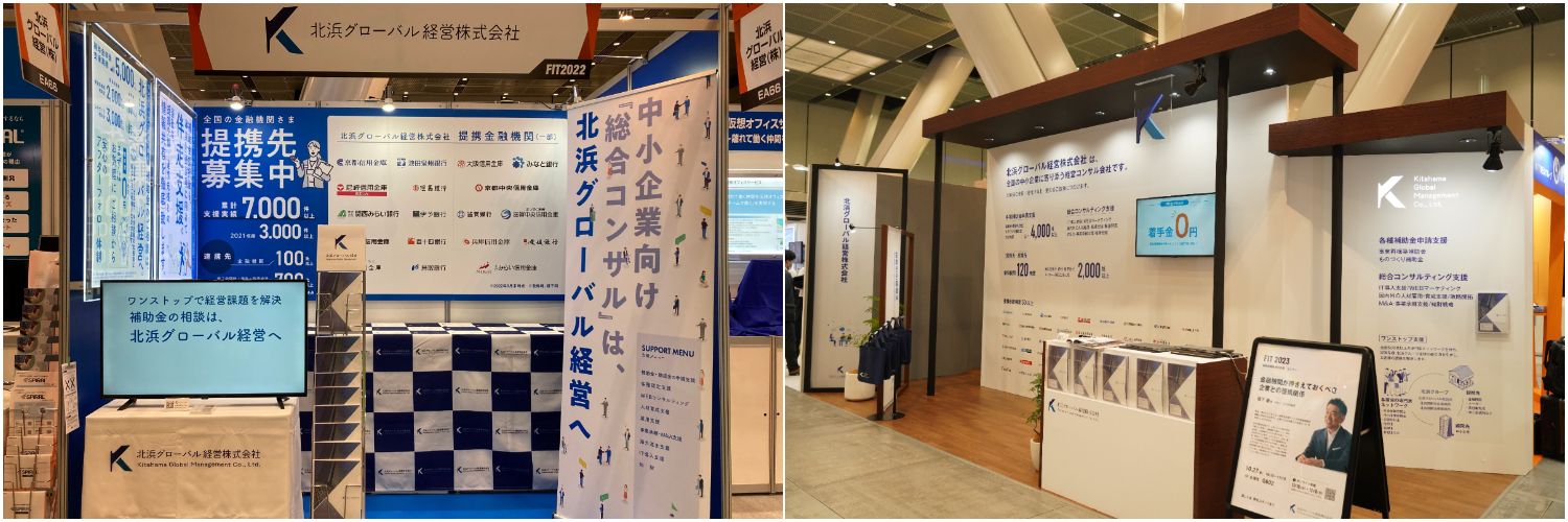 北浜グローバル経営は10月26~27日、金融機関との提携拡大や関係強化を図るべく東京国際フォーラムにて開催された金融機関のためのITフェア「FIT2023」※1に出展しました。同展示会では、総合コンサル会社の当社ならではの強みである包括契約を主体としたサービス※2をご紹介しました。