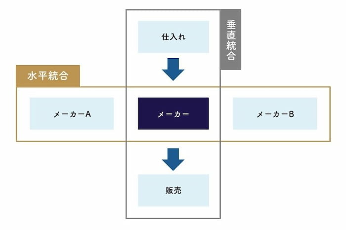 「規模拡大のために同業他社を買収することを『水平統合』、自社製品の流通フローを図にした時の上流または下流工程にある業種の企業を買収することを『垂直統合』と言います。水平統合では『規模の拡大、競合の吸収、ノウハウのある従業員の確保』、垂直統合では『新規事業への進出、現在の流通コスト削減』などが実現できます」