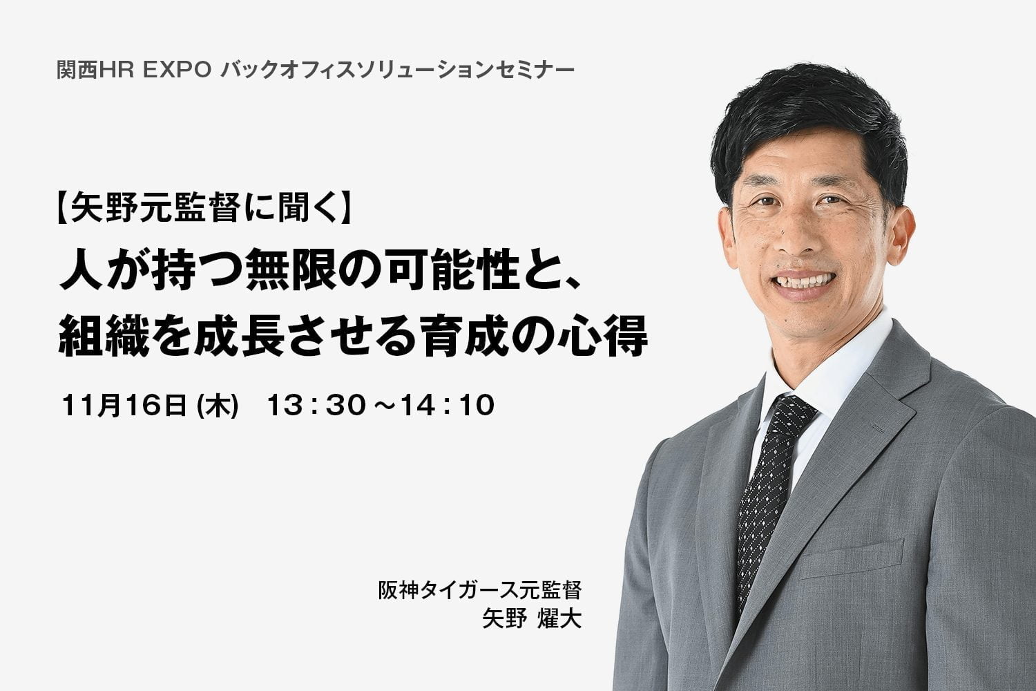 阪神タイガース元監督・矢野燿大氏によるセミナー登壇も予定しておりますので、ぜひご来場ください。